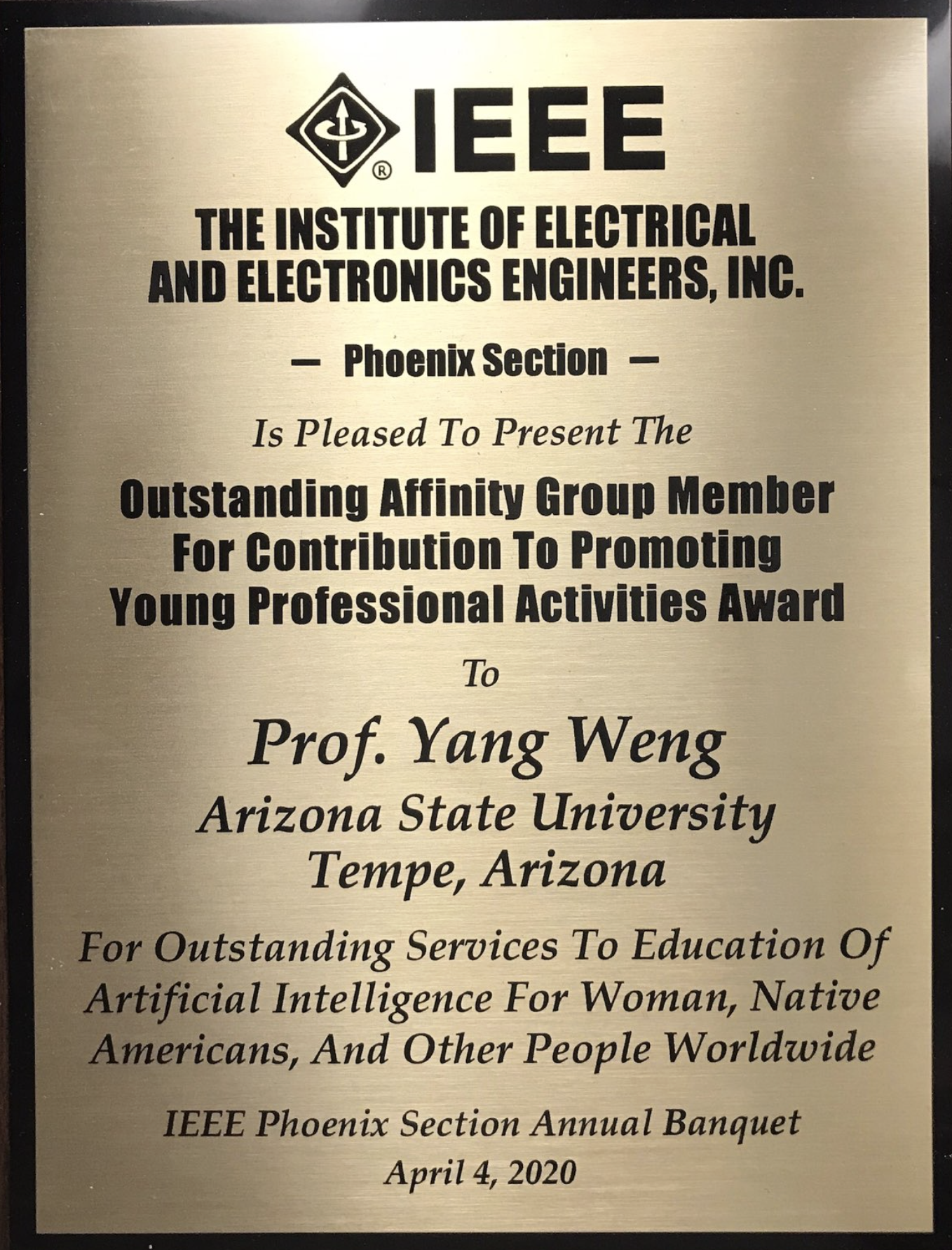Outstanding IEEE Young Professional Award, IEEE Phoenix Section, Mar 2020. Link